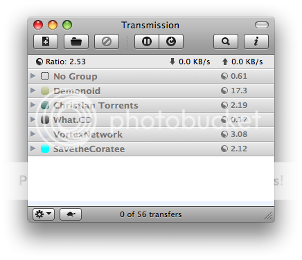 9. (Leopard only) Now you will probably want to hide all the torrents into one group that you assigned it to. Simply click on the triangle to collapse the group: